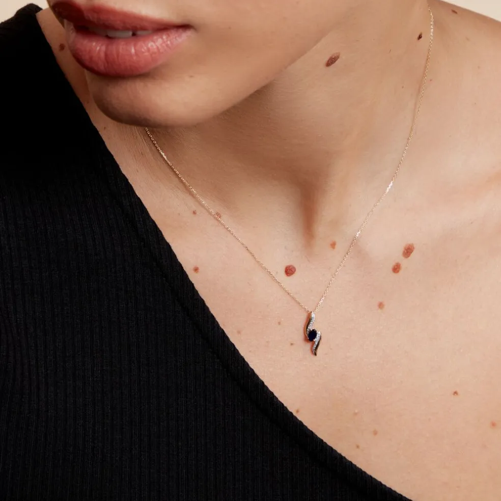 Collier Or Jaune 375/1000 Saphir Incline Et Diamants 42cm