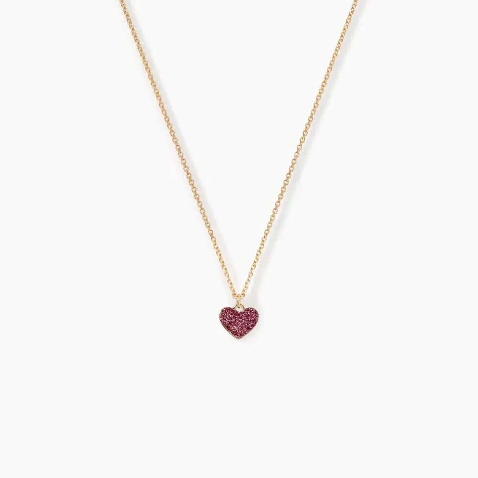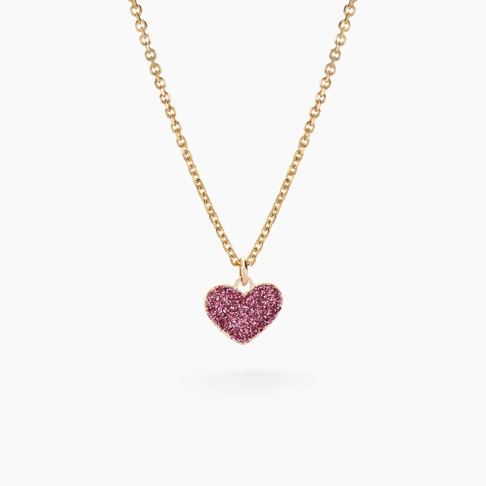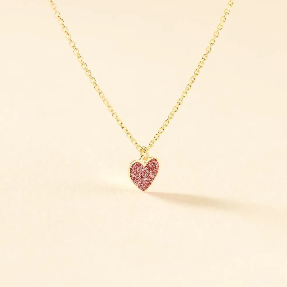 Collier Or Jaune 375/1000 Motif C艙ur Glitter Rose Maille Jaseron 38cm
