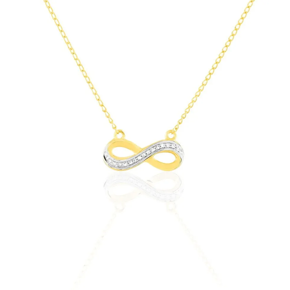 Collier Or Jaune 375/1000 Forme Infini Avec Pavage Diamants 50cm
