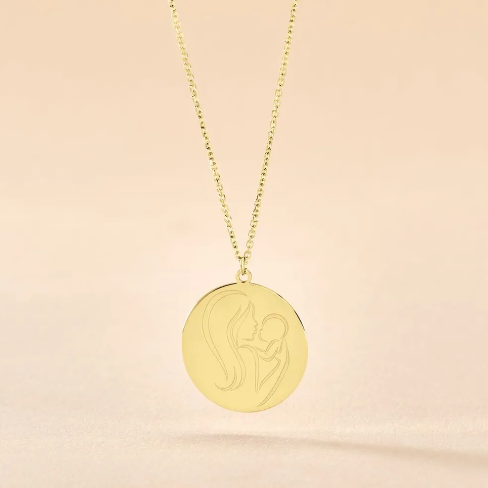 Collier Or Jaune 375/1000 Pastille Maman Et Enfant 42cm
