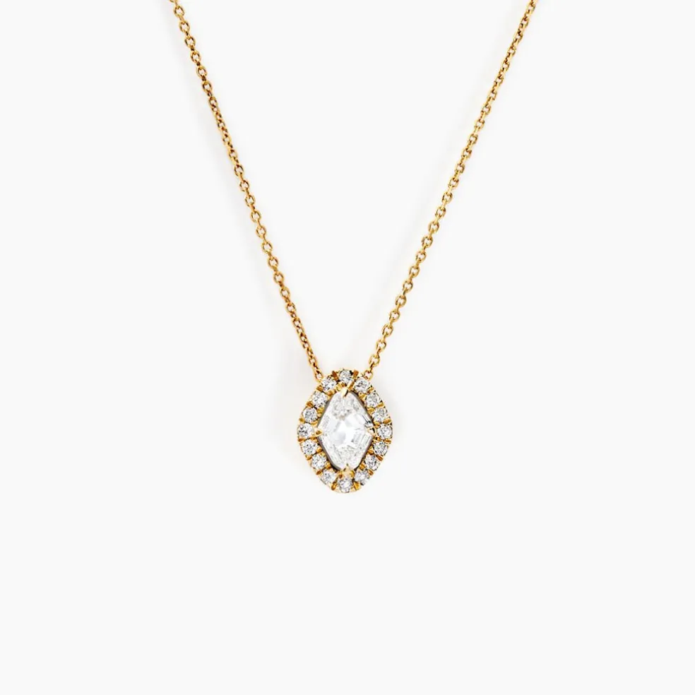 Collier Or Jaune 750/1000 Losange Entourage Diamants Synthetiques 0.5cts Sertis Griffes Forcat 42cm