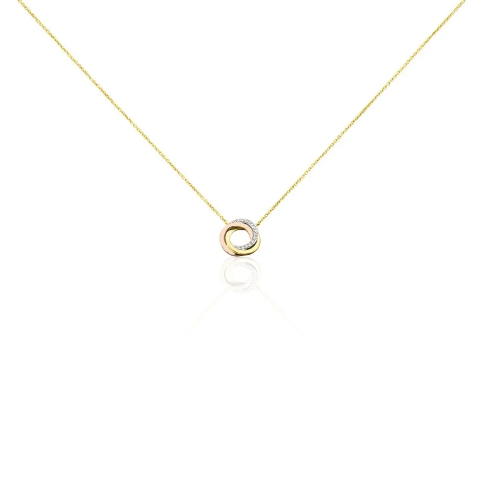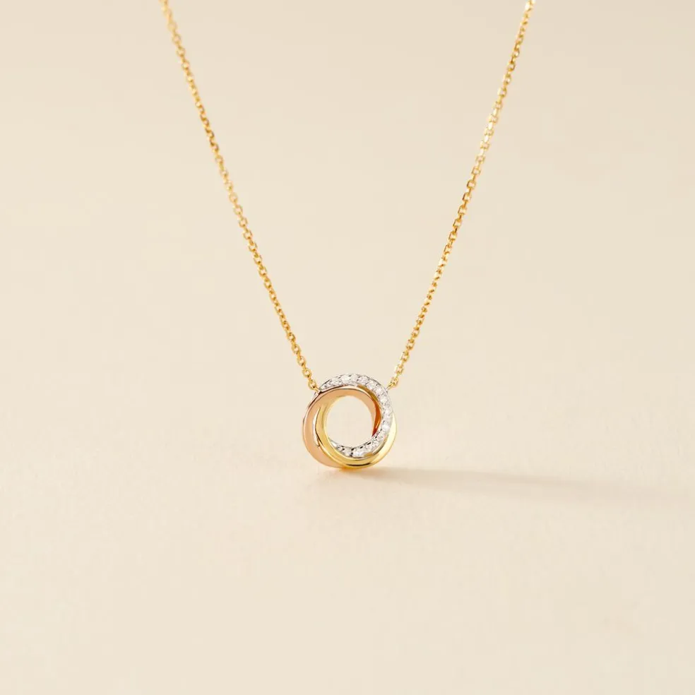 Collier Or Tricolore 375/1000 Cercles Entrelaces Diamants 42cm