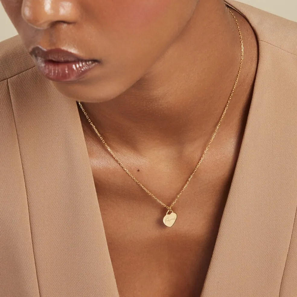 Collier Plaqué Or Jaune C艙ur Gravé Forever Maille Forçat 42+3cm