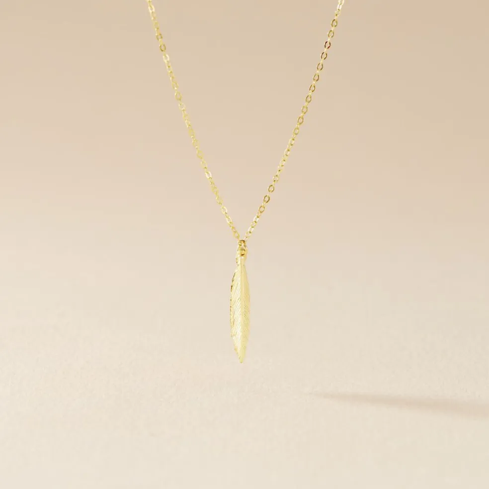 Collier Or Jaune 375/1000 Plume Maille Forcat 40+2cm