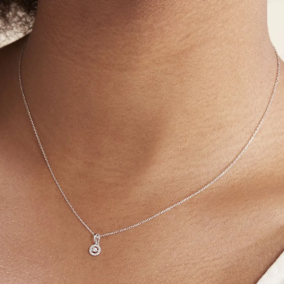 Collier Or Blanc 375/1000 Entourage Diamant 0.02cts 42cm