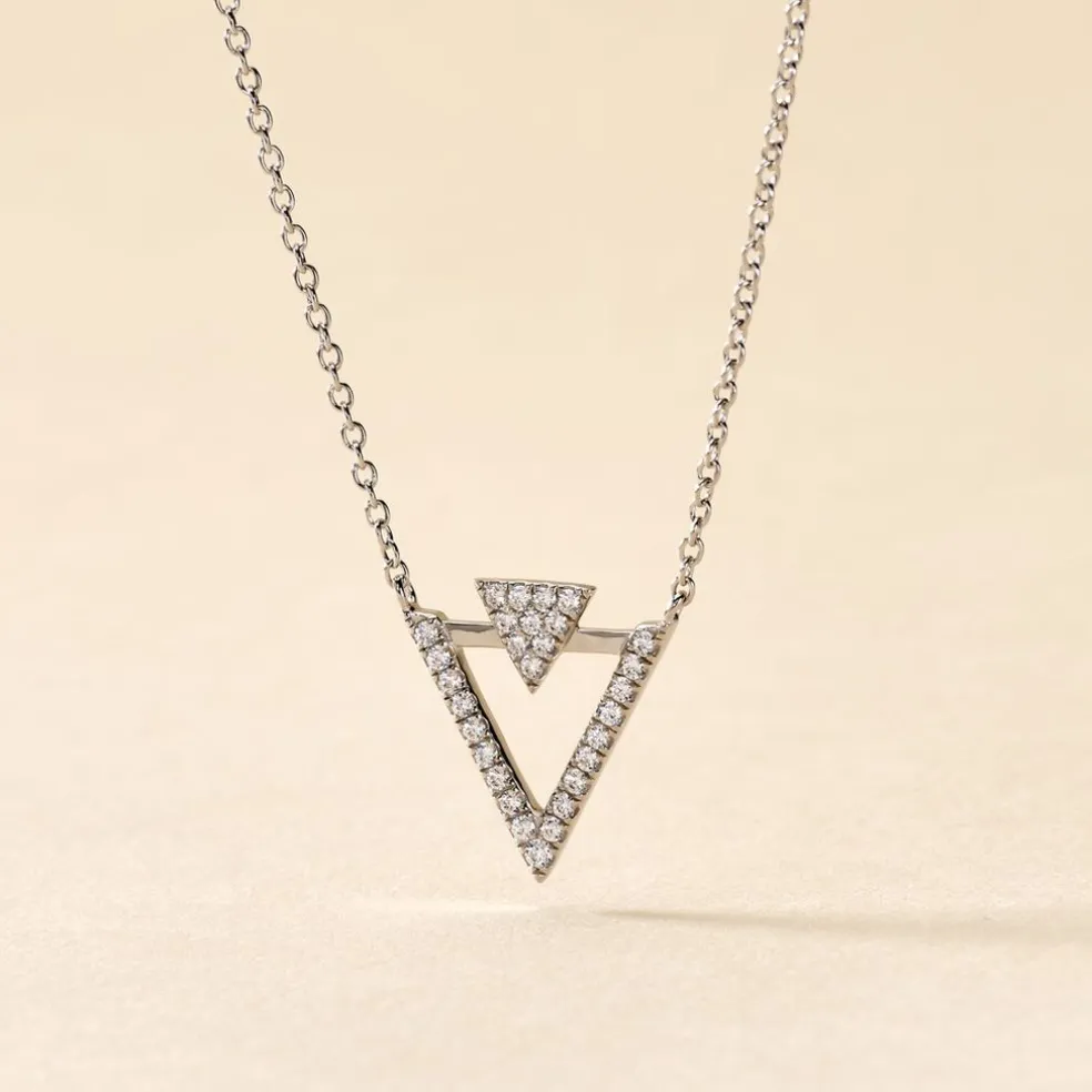 Collier Argent 925/1000 domnika Double Triangles Ajoures Oxydes De Zirconium 45cm