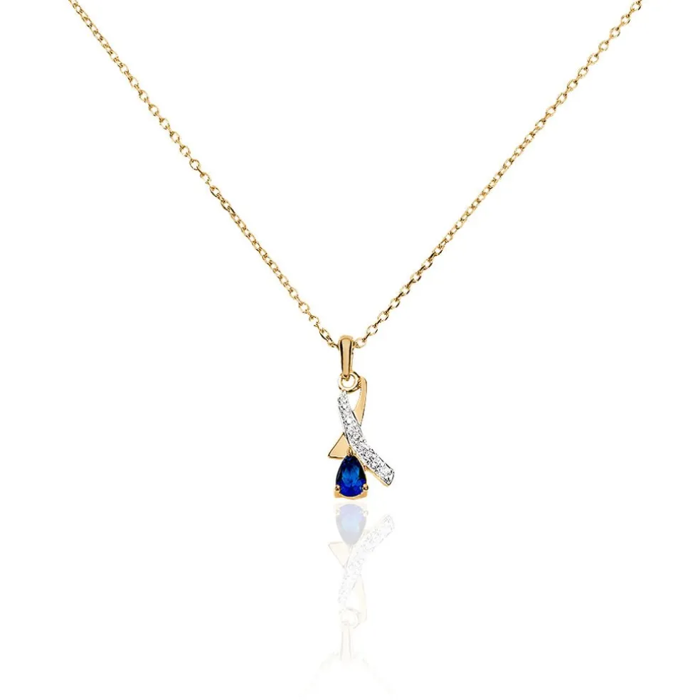 Collier Plaque Or Oxydes De Zirconium Bleus Et Blancs 45cm