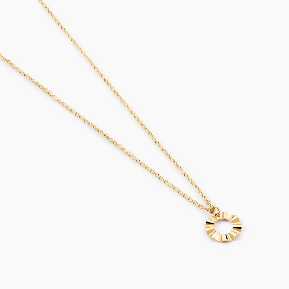 Collier Or Jaune 375/1000 Cercle Ajoure Froisse Maille Jaseron 40+2cm