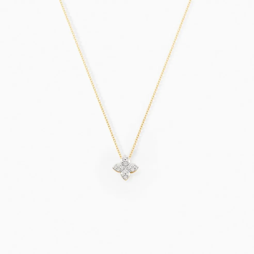 Collier Or Jaune 375/1000 Fleur Oxyde De Zirconium Maille Forcat 40+2cm