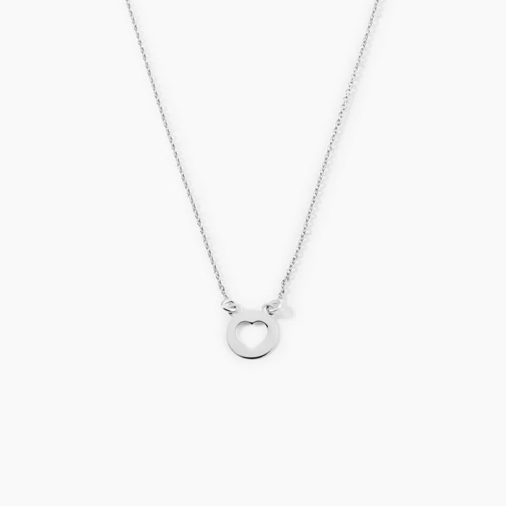 Collier Argent Blanc 925/1000 Pastille Motif Coeur Ajoure Maille Forcat 40cm