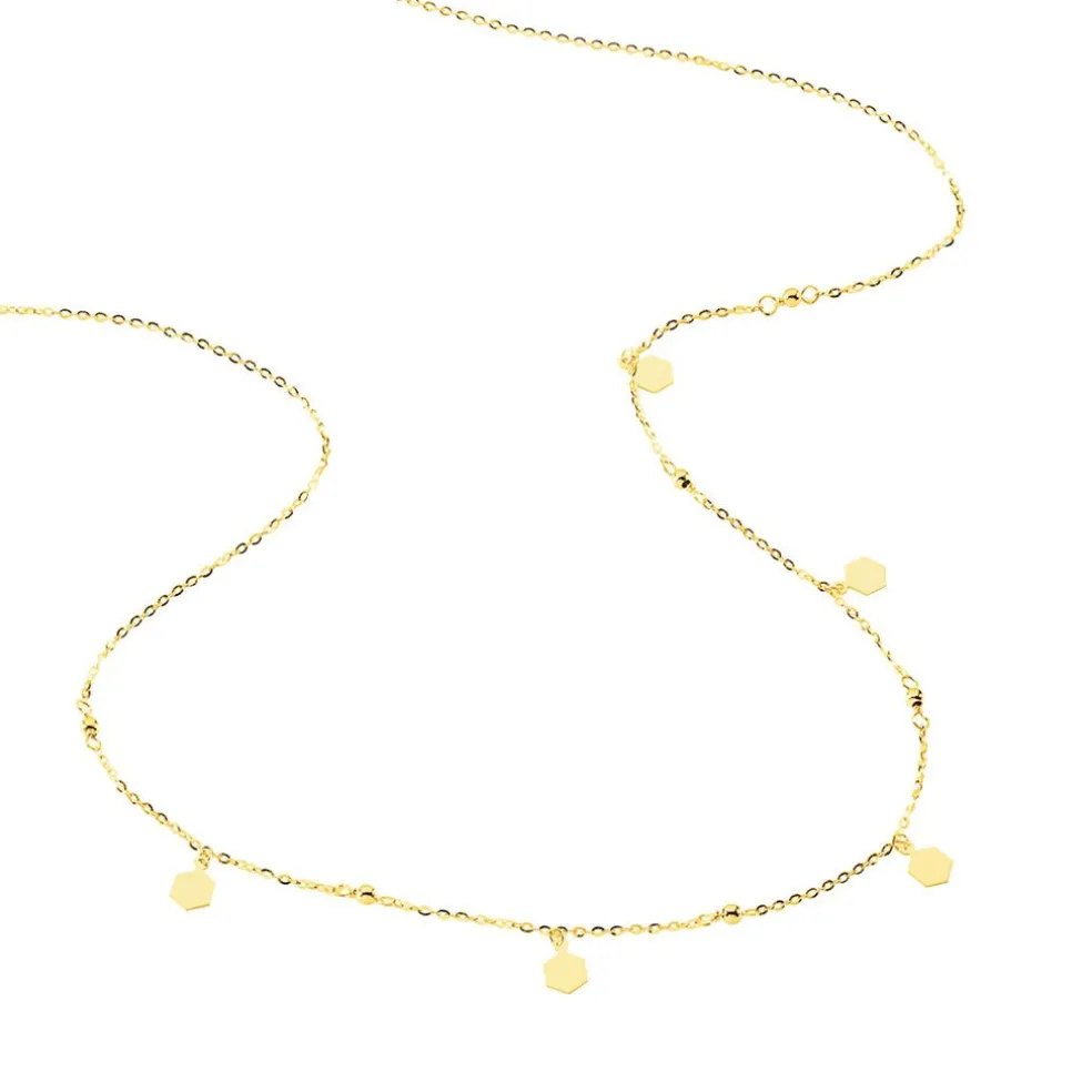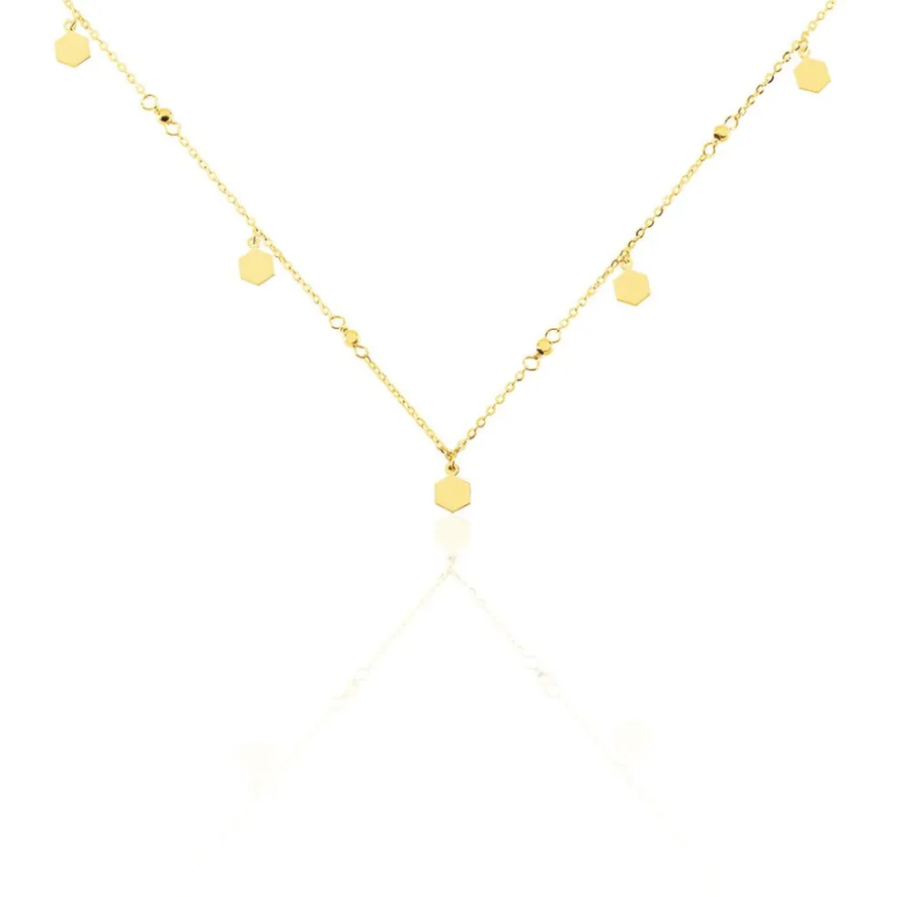 Collier Or Jaune 375/1000 Motifs Hexagones Pendants + Petites Boules Or Maille Jaseron 42cm