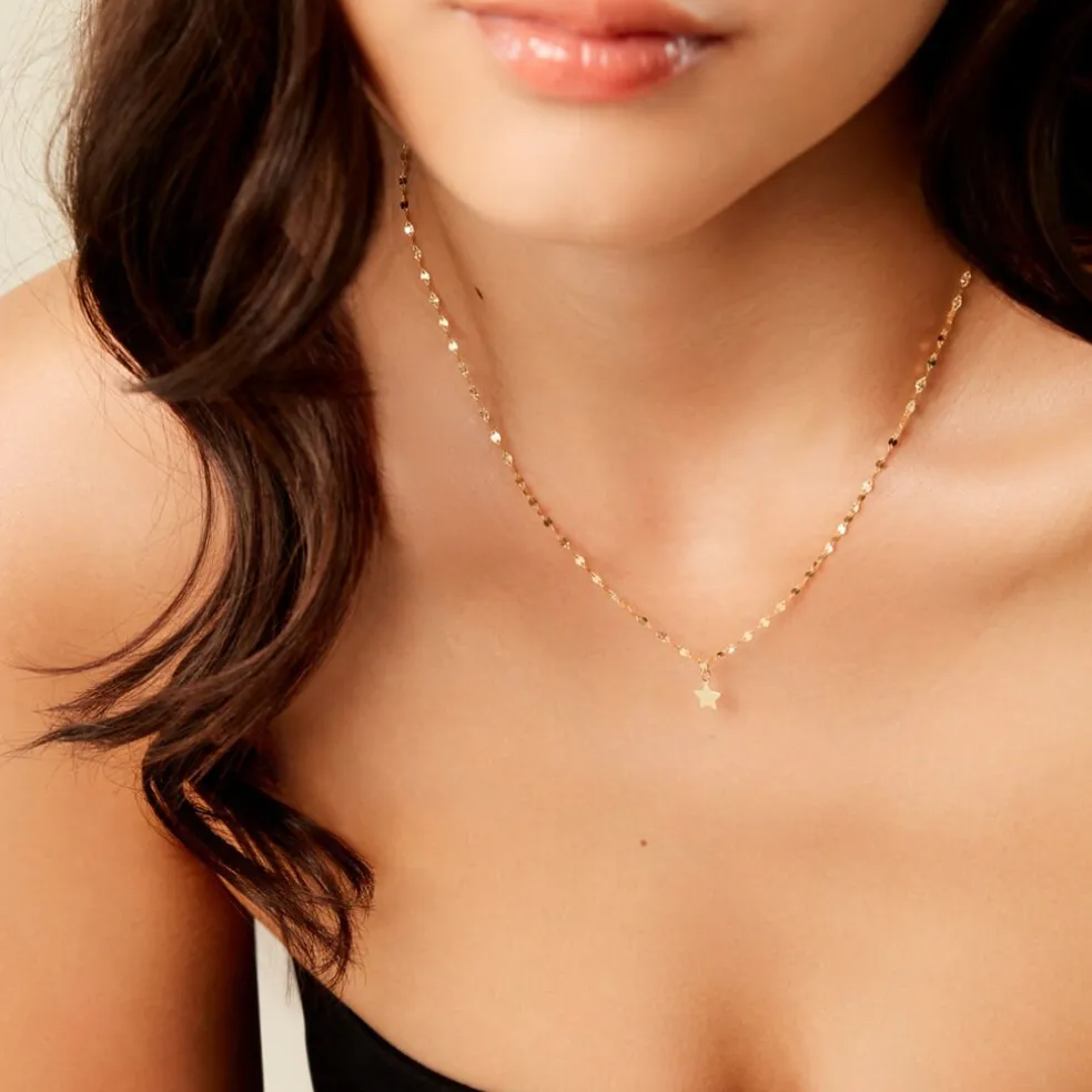 Collier Or Jaune 375/1000 Etoile Maille Lumina 40+2Cm