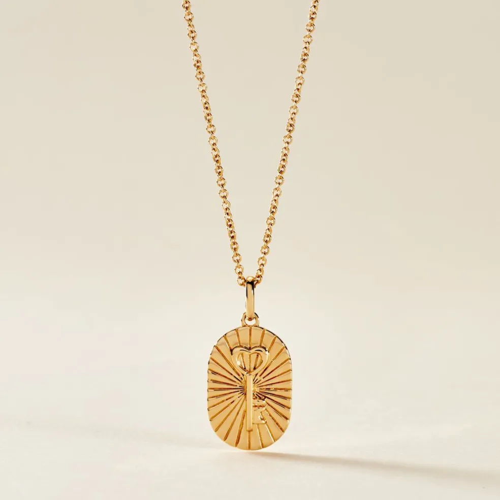 Collier Plaqué Or Jaune Ovale Strié Motif Clé Maille Forçat 42+3cm