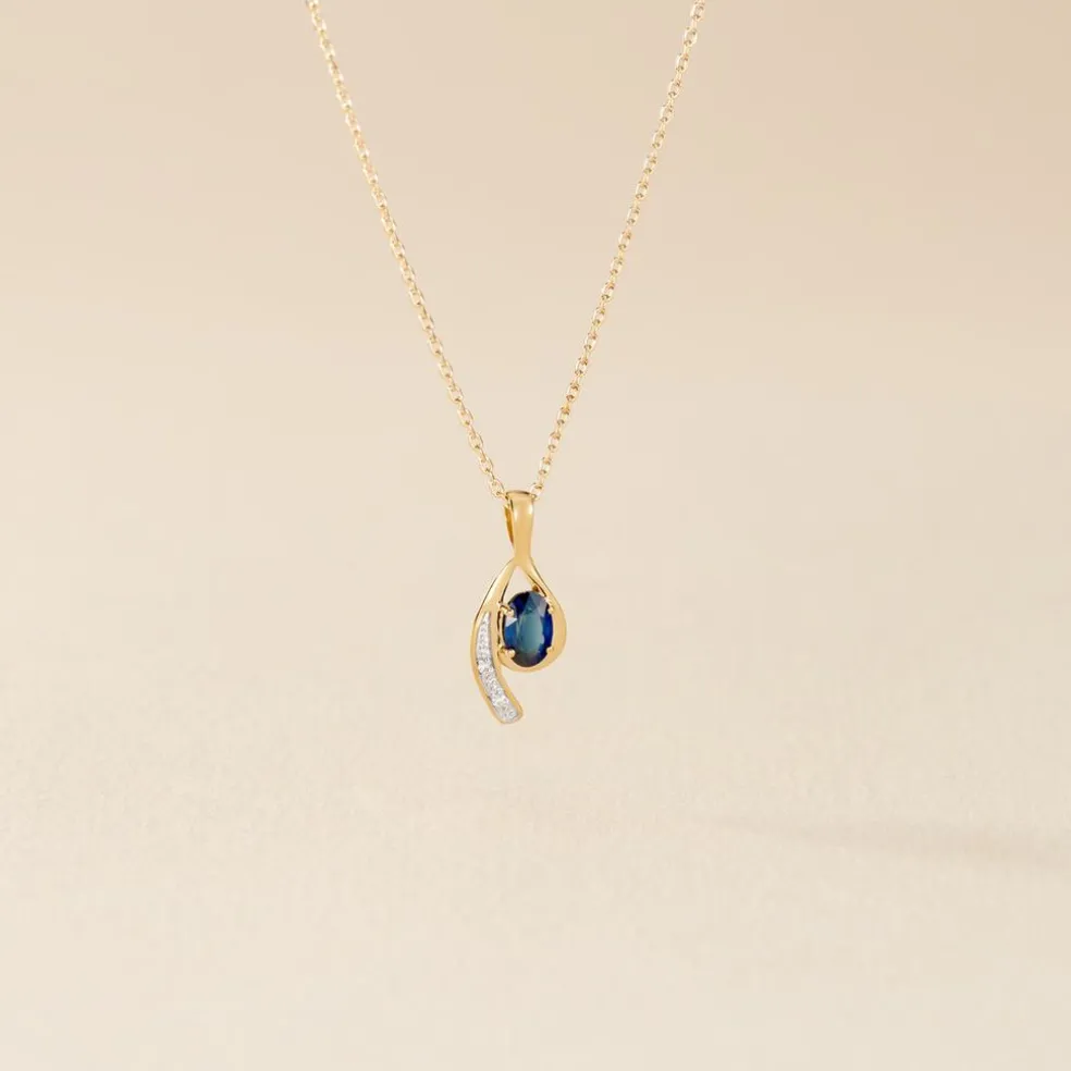 Collier Or Jaune 375/1000 Oval Serti Griffes Saphir 0.3ct 40+2cm