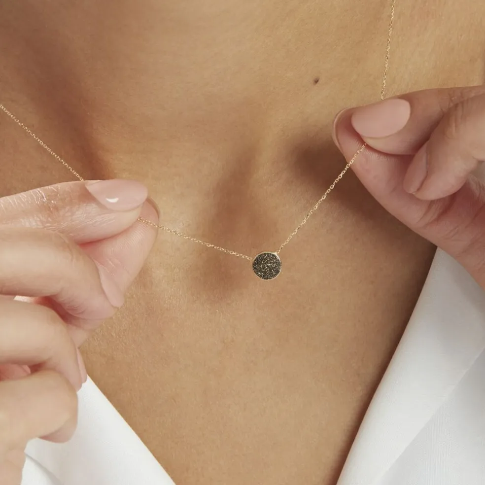 Collier Or Jaune 375/1000 Pastille Glitter Bronze Maille Jaseron 40+2cm