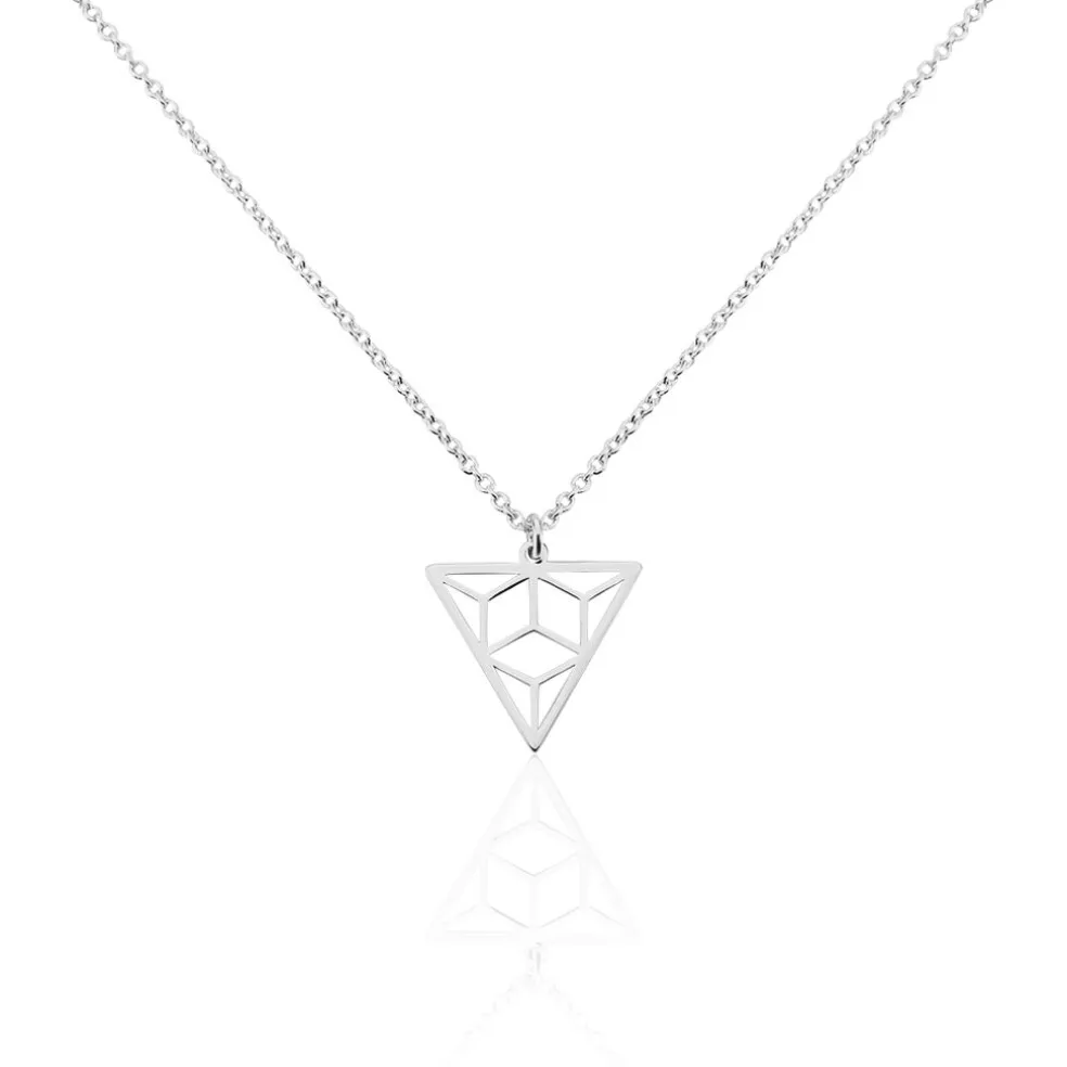 Collier Argent Blanc 925/1000 Triangle Motifs Geometriques Ajoures Maille Forcat 45cm