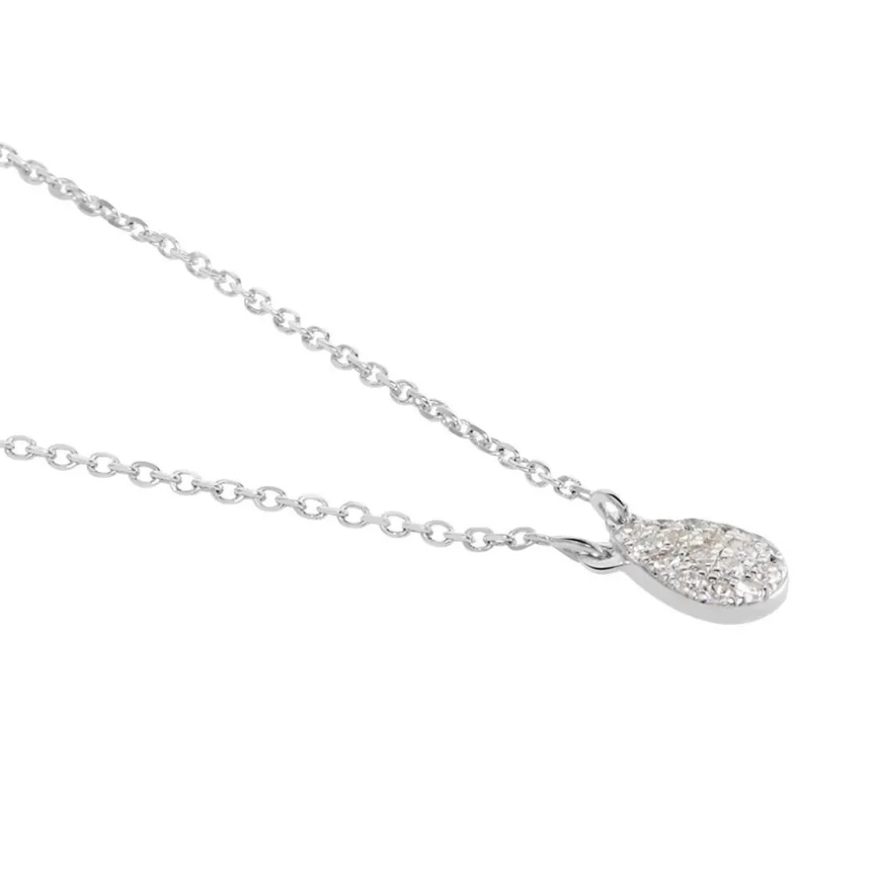 Collier Or Blanc 375/1000 Goutte Pavage Diamants 0.46mm 40cm