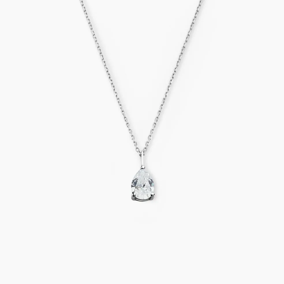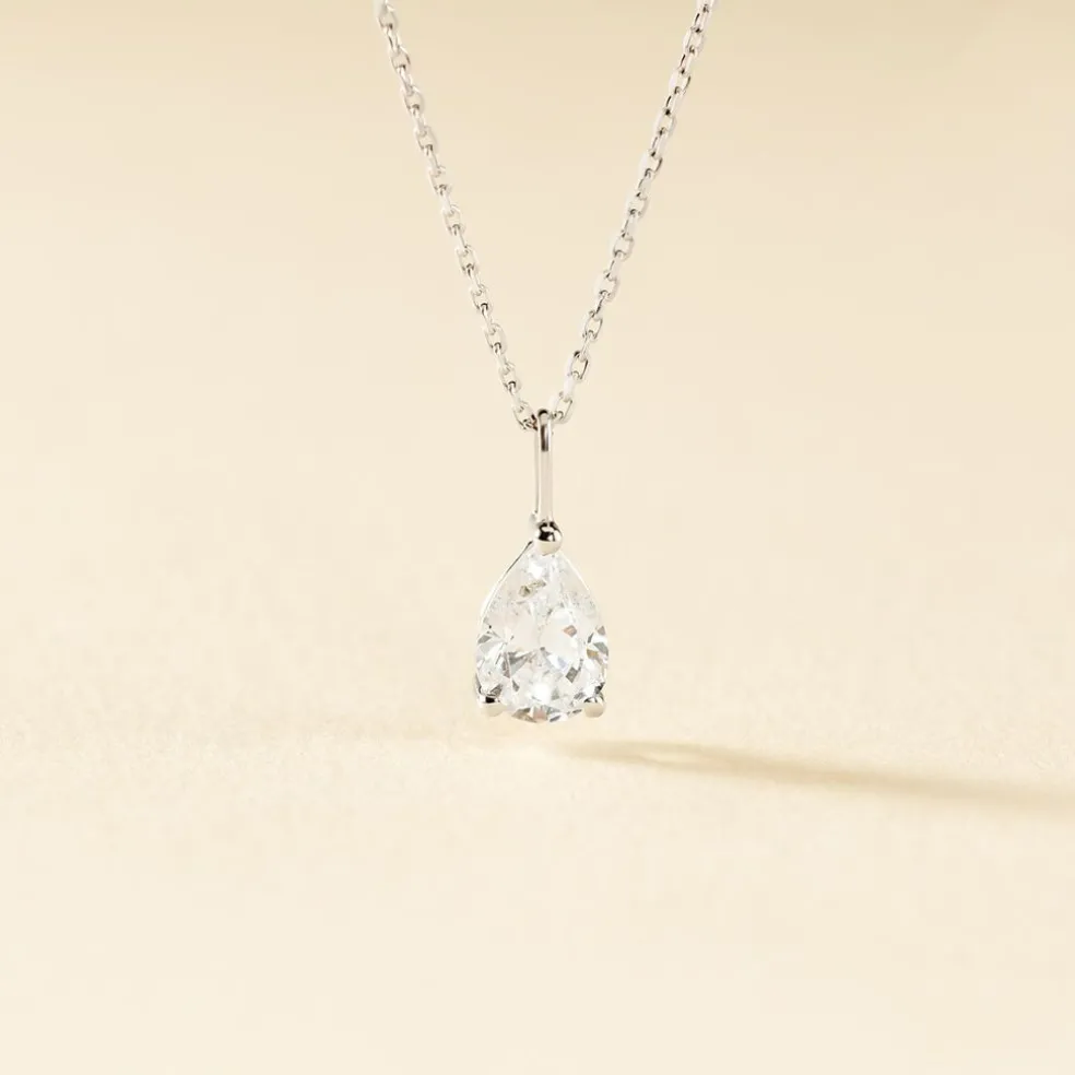 Collier Or Blanc 375/1000 Maille Forçat Oxyde De Zirconium Poire Serti Griffes 45cm
