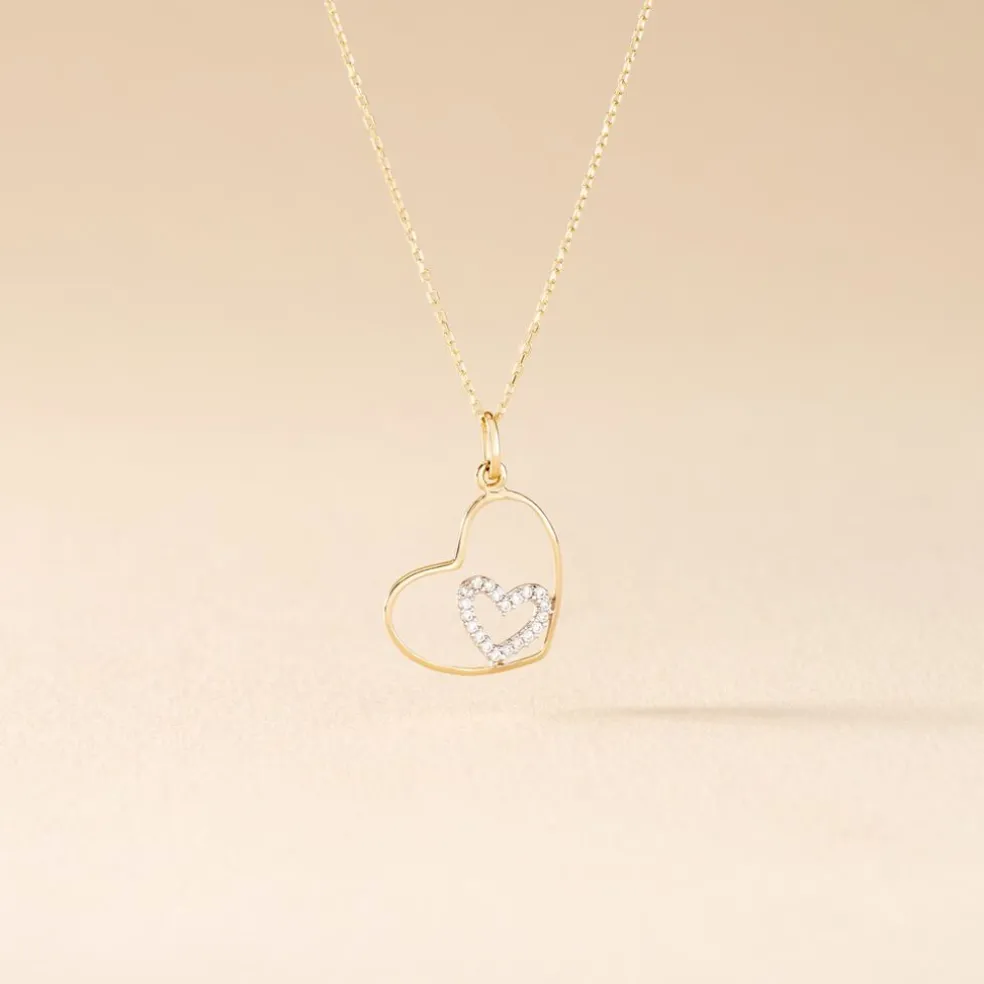Collier Or Jaune 375/1000 C艙ur Double Oxydes De Zirconium Maille Forçat 42cm