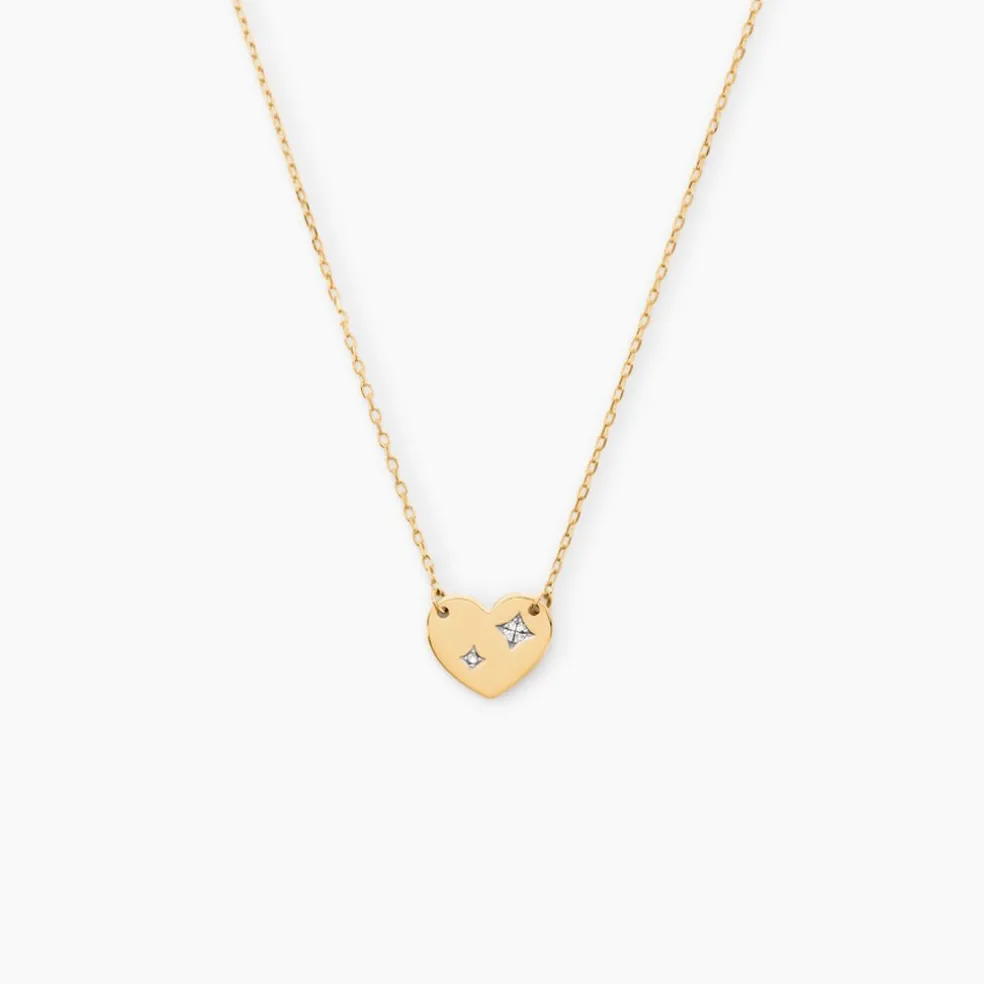Collier Or Jaune 375/1000 Coeur Diamants 0.004cts Serti Etoile Maille Forcat 40+2cm