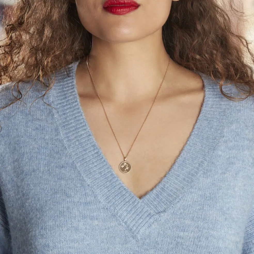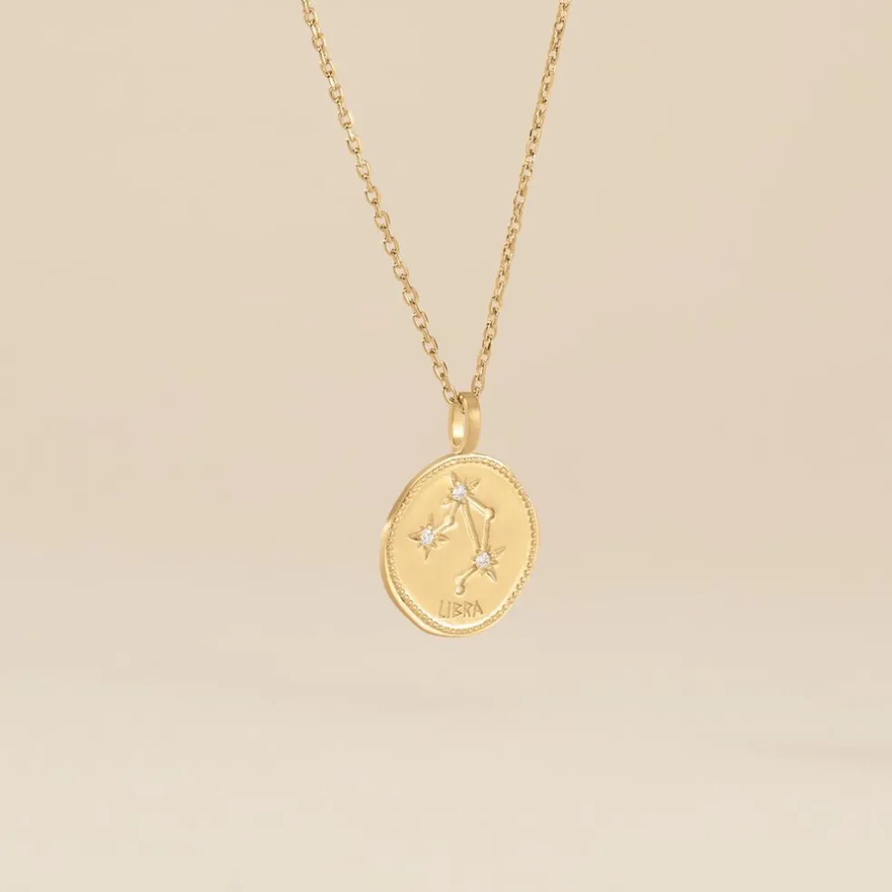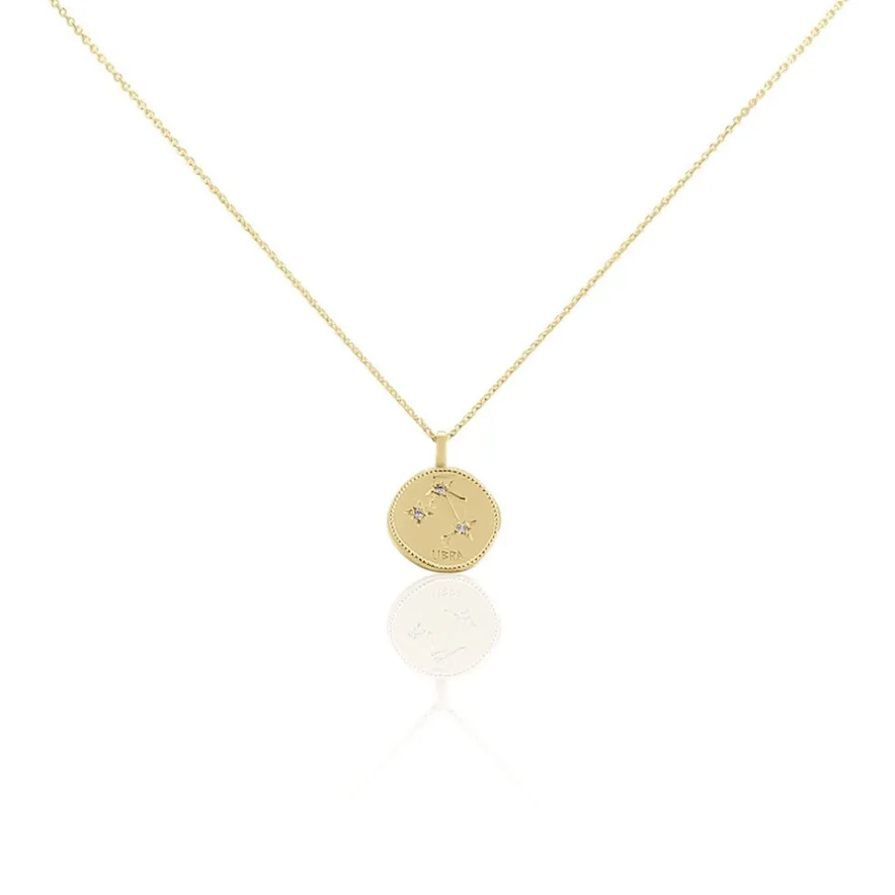 Collier Plaqué Or Jaune Pastille Mate Signe Astrologique Balance Oxydes De Zirconium Chaine Forcat 50cm