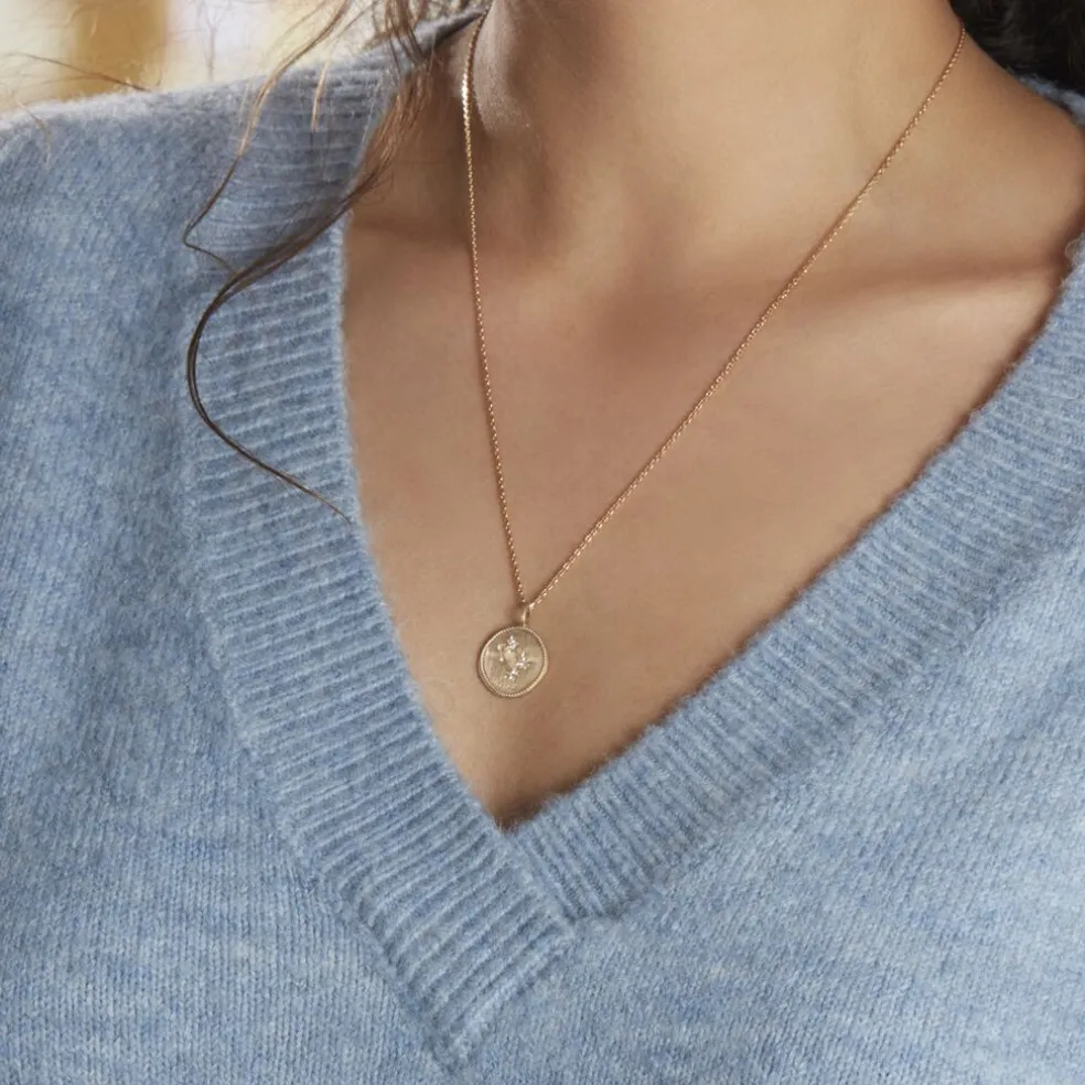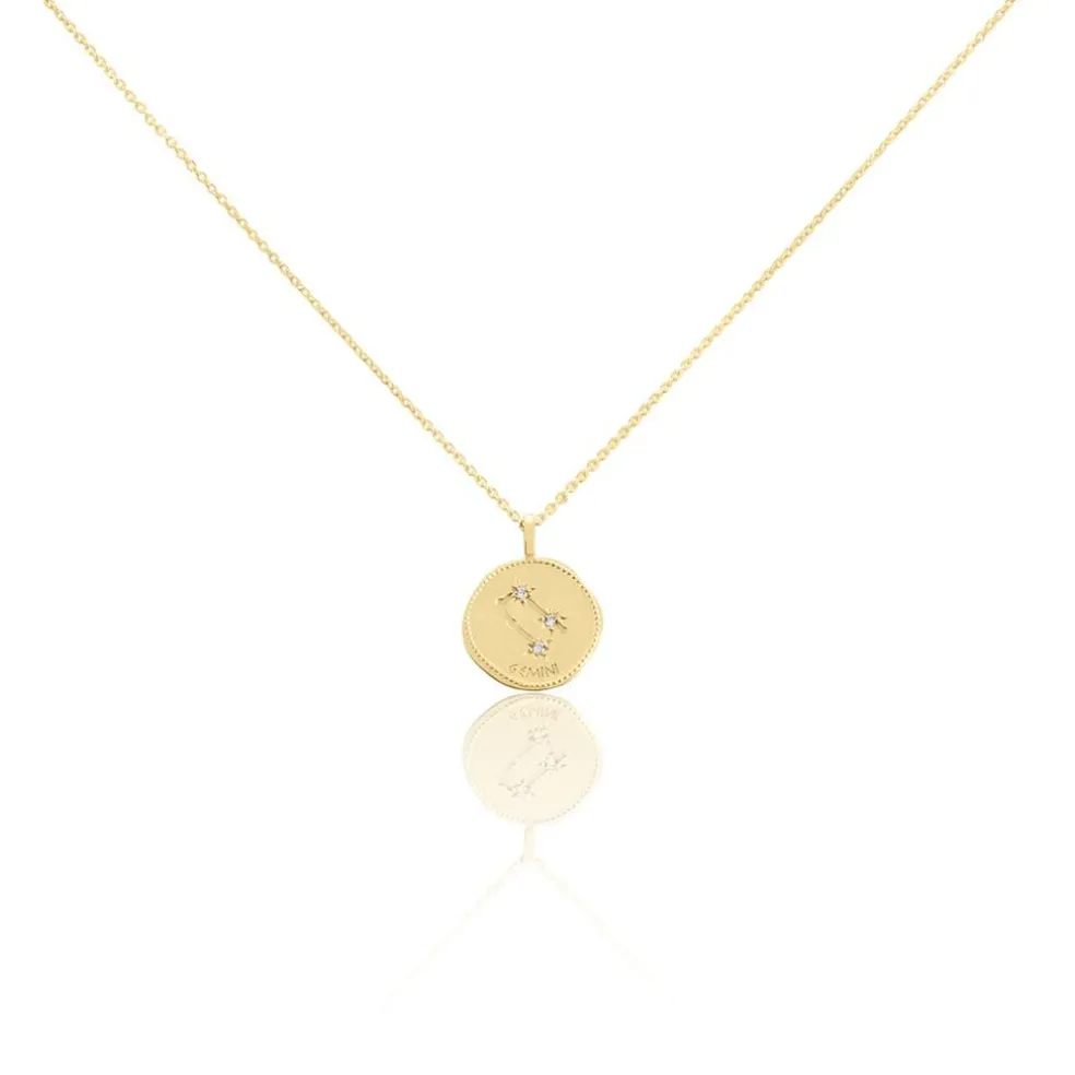 Collier Plaqué Or Jaune Pastille Mate Signe Astrologique Gemeaux Chaine Forcat 50cm