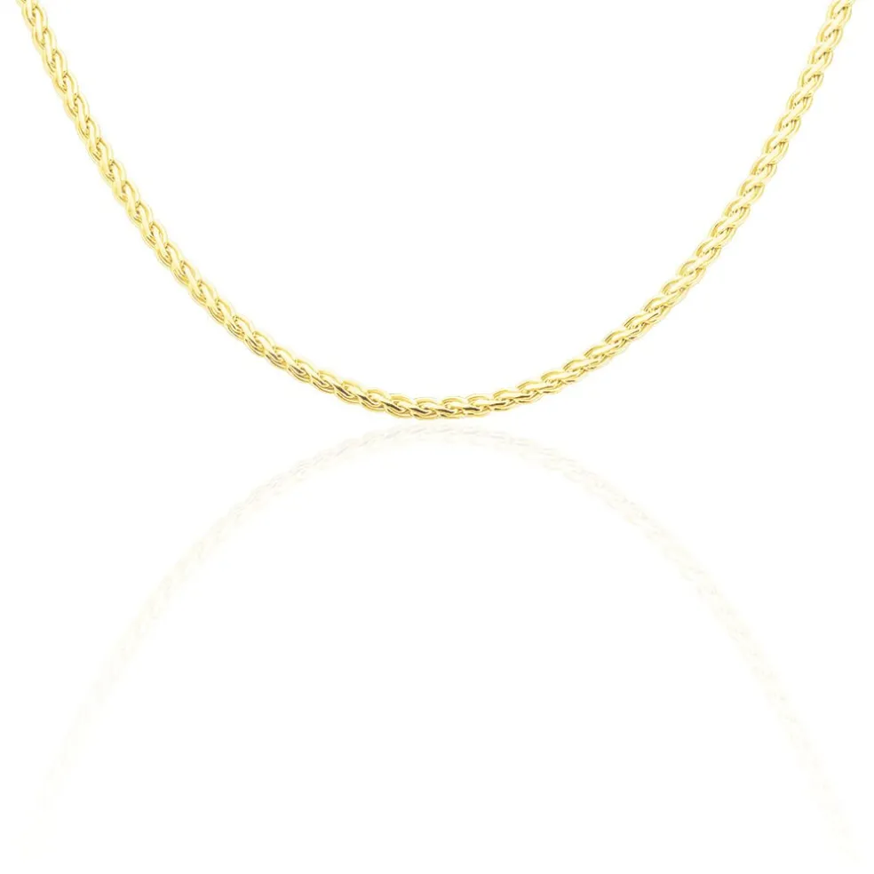 Collier Or Jaune 375/1000 Maille Palmier Ecrase 3.5mm 42cm
