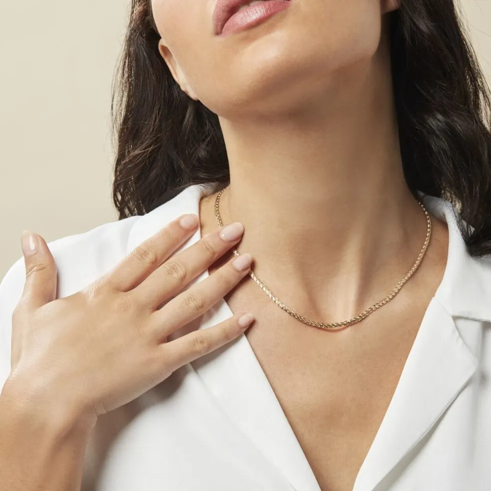 Collier Or Jaune 375/1000 Maille Palmier Ecrase Largeur 3mm 42cm