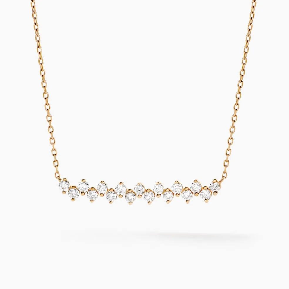 Collier Or Jaune 375/1000 Diamants Synthetiques 0.27cts Sertis Griffes Maille Forcat 40+2cm