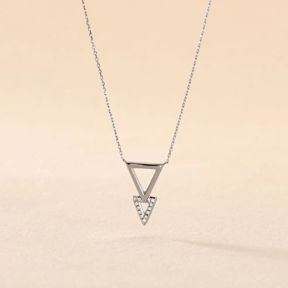 Collier Or Blanc 375/1000 Double Triangles Diamants 42cm
