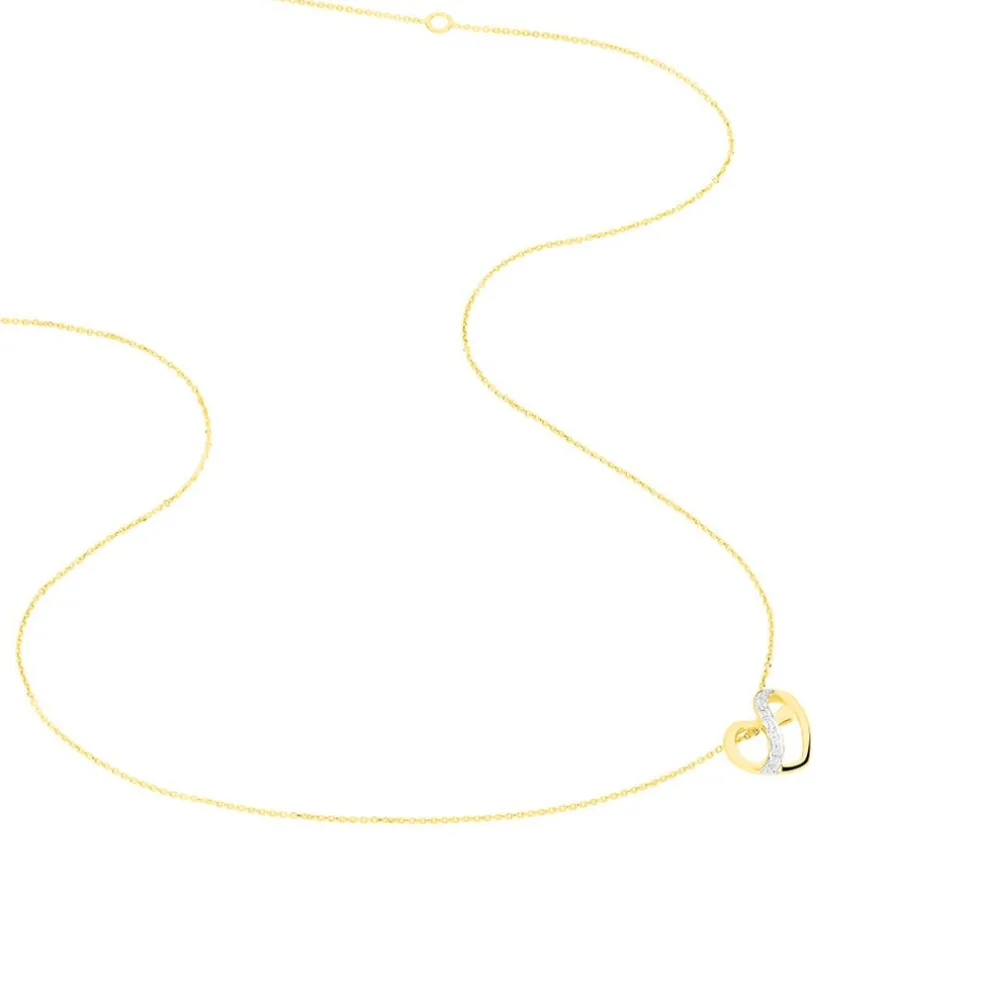 Collier Or Jaune 375/1000 Forme C艙ur Ruban De Diamants 42cm