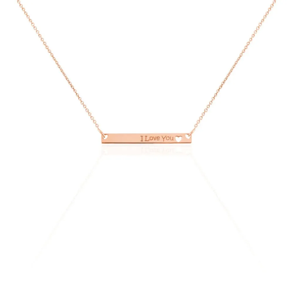 Collier Argent Rose Forme Barrette Message I Love You C艙ur Ajoure 42cm