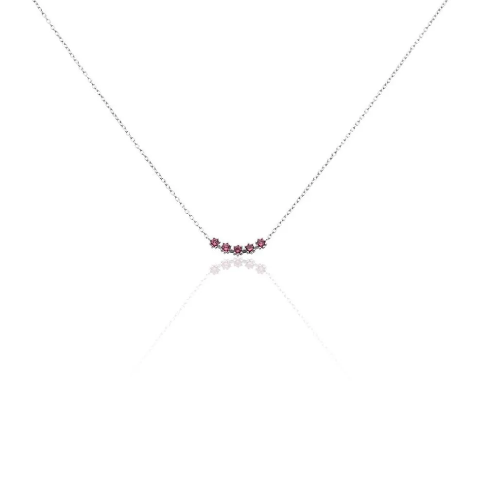 Collier Argent 925/1000 5 Oxydes De Zirconium Rouges Serti Griffes Effet Perlé Maille Forçat 45cm