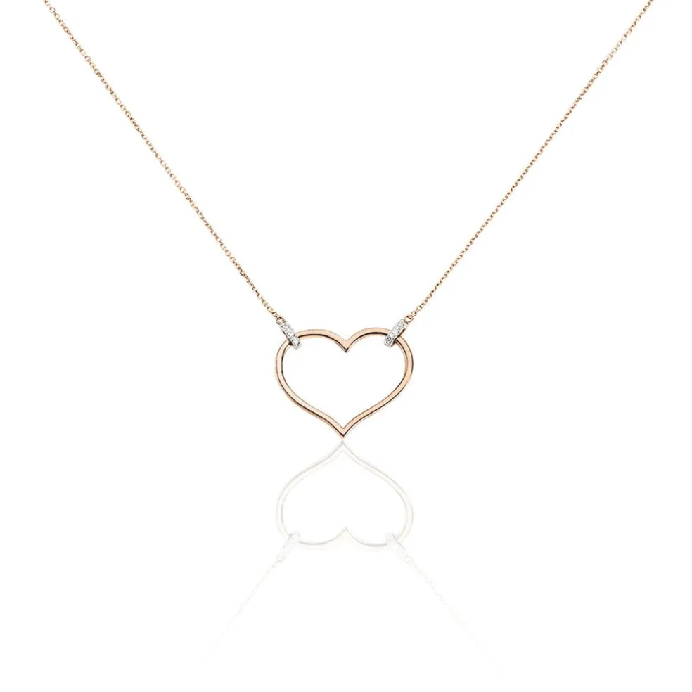 Collier Or Rose 375/1000 C艙ur Ajoure Pavage Diamants 42cm