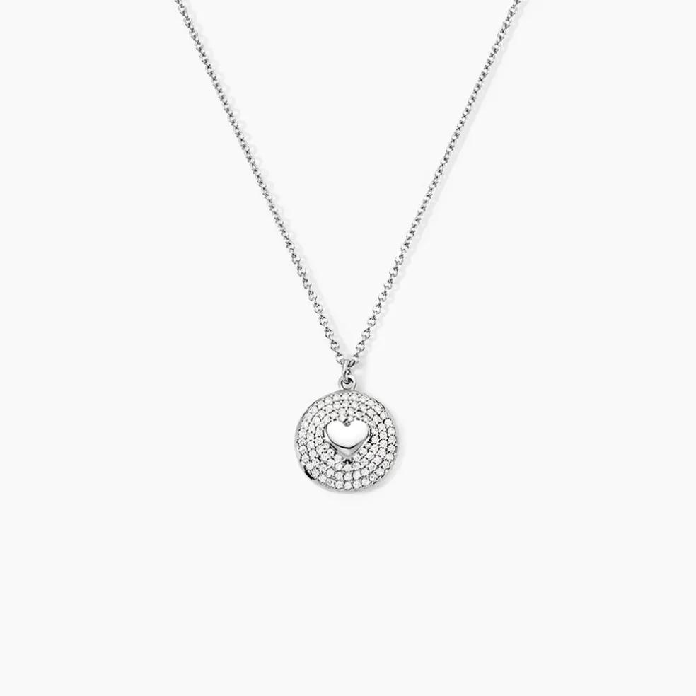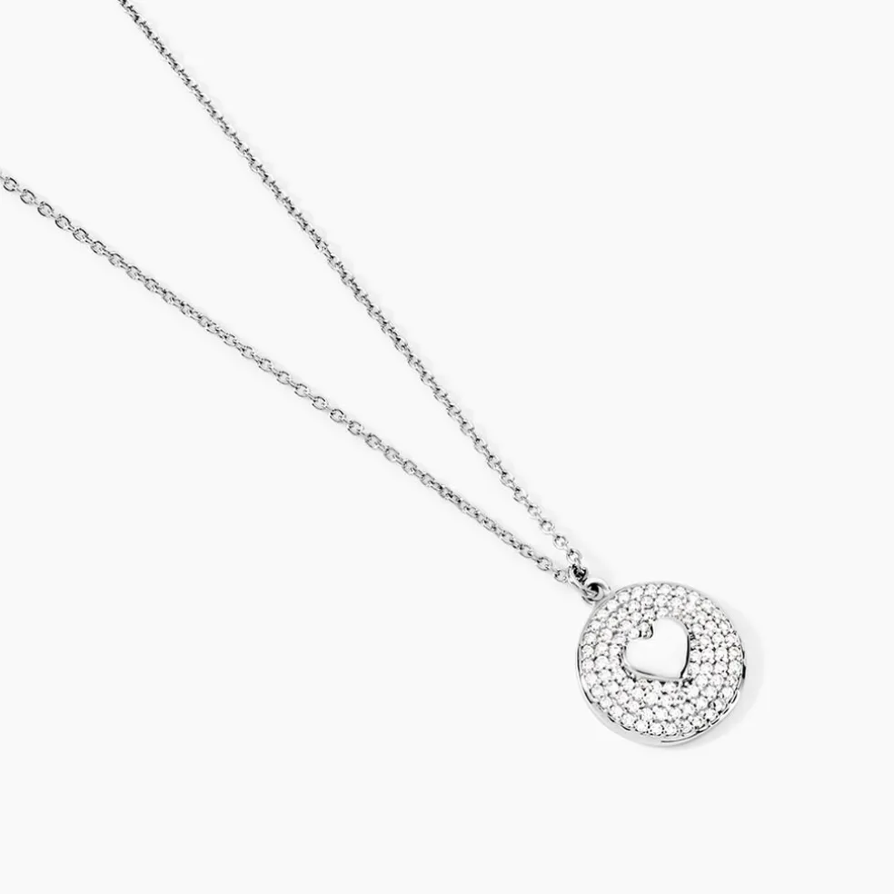 Collier Argent 925/1000 Pastille C艙ur Maille Forçat Pavage Oxydes De Zirconium 45cm