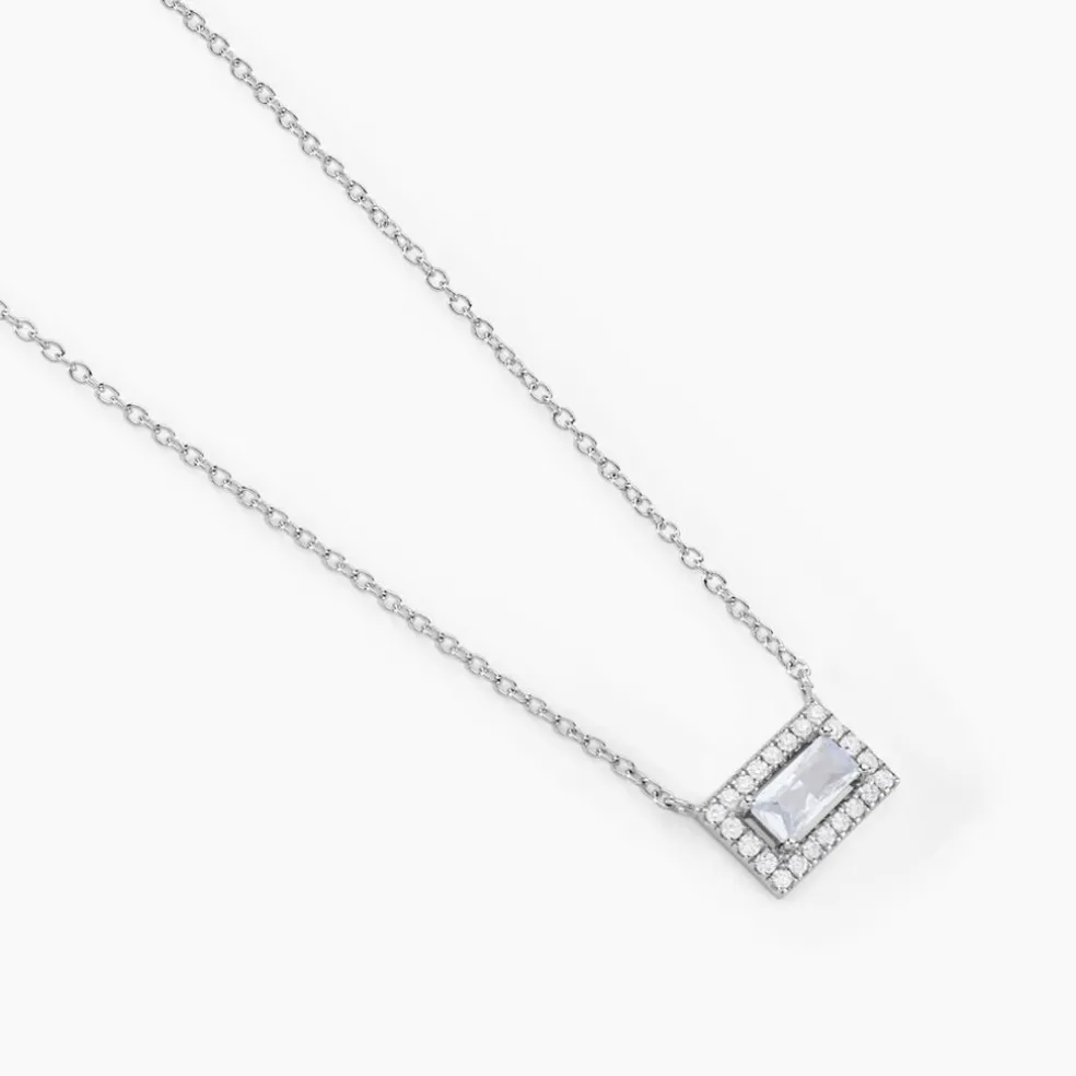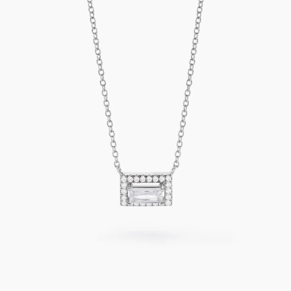 Collier Argent 925/1000 laurine Forme Rectangle Oxyde De Zirconium Central Et Entourage 45cm