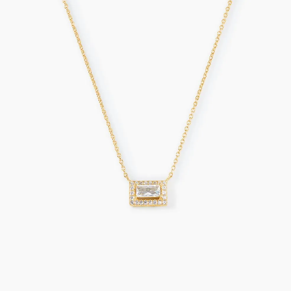 Collier Argent Jaune 925/1000 Forme Rectangle Oxyde De Zirconium Central Et Entourage 45cm