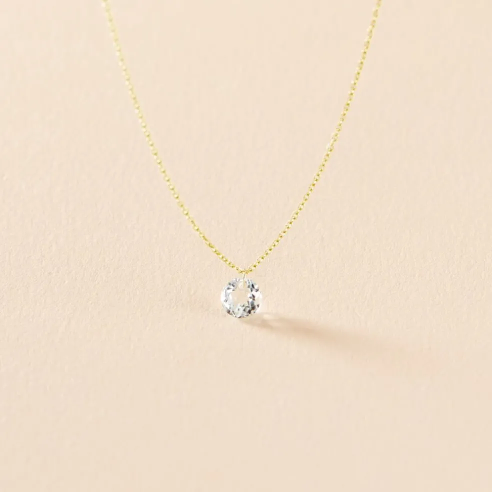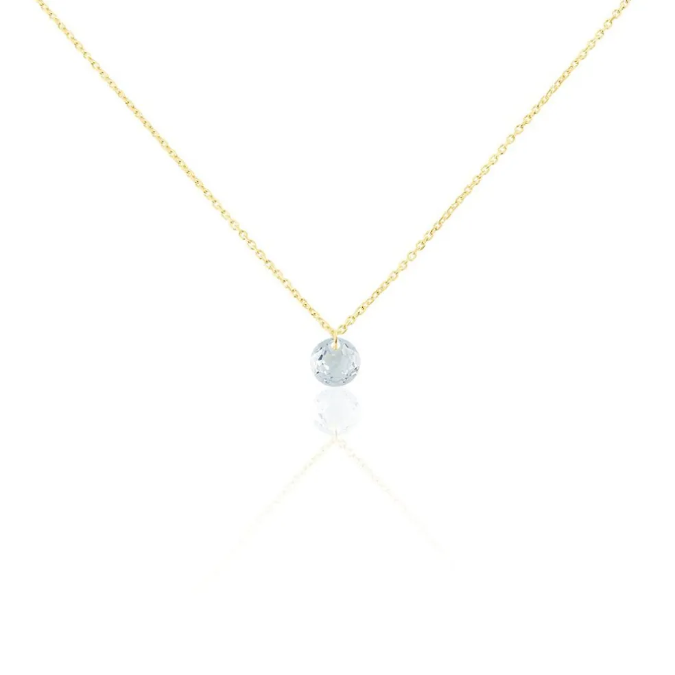 Collier Or Jaune 375/1000 Topaze Azur Ronde Percée 0.65 Cts Maille Forçat 42cm