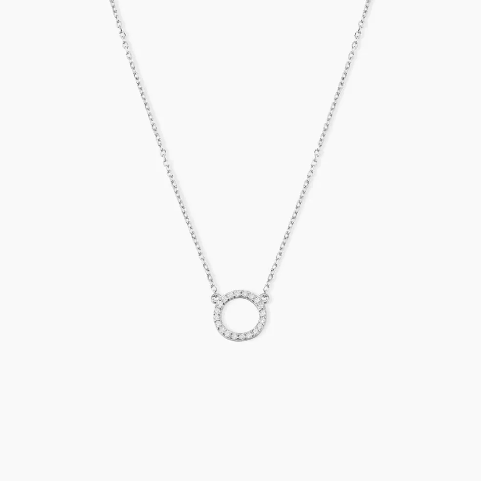 Collier Or Blanc 375/1000 Cercle Creux Pave Oxyde De Zirconium 42cm
