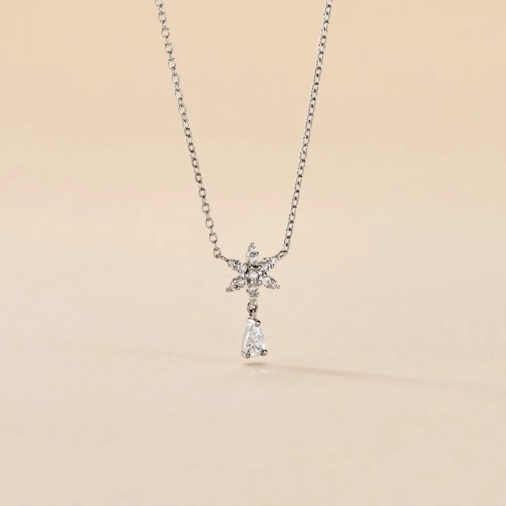 Collier Argent 925/1000 Etoile Oxyde De Zirconium Serti Griffes Maille Forçat 45cm