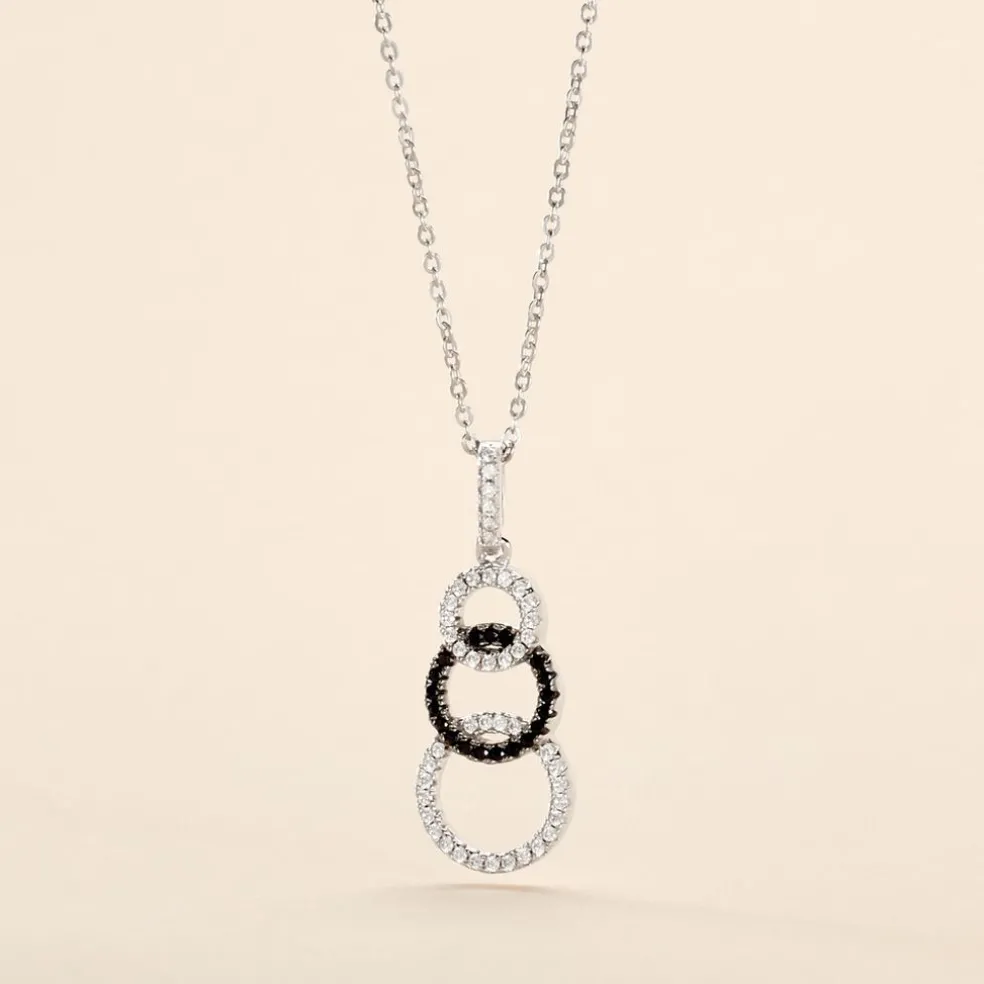 Collier Argent 925/1000 liyana Oxydes De Zirconium Noir Et Blanc Ronds Alternes 42cm