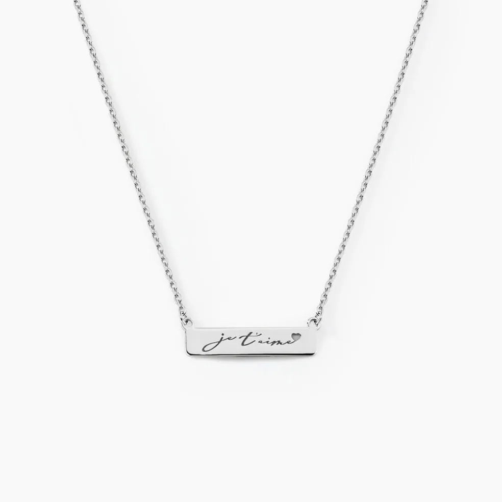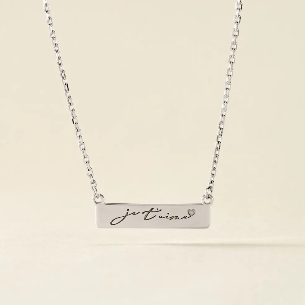 Collier Argent Blanc 925/1000 Plaque Rectangulaire Message Je T’aime Maille Forçat 42+3cm