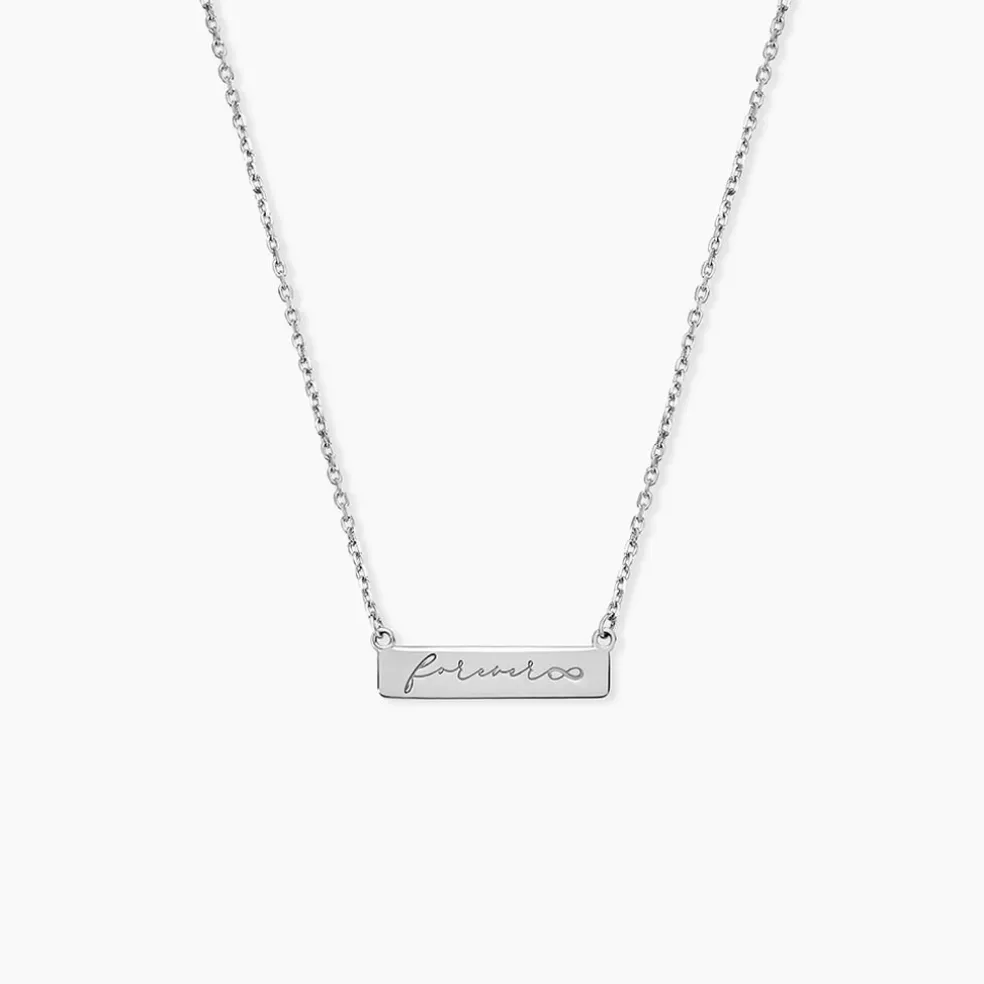 Collier Argent Blanc 925/1000 Plaque Rectangulaire Message Forever Maille Forçat 42+3cm