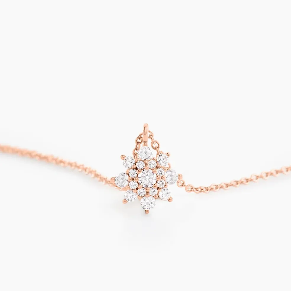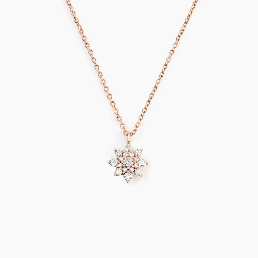 Collier Argent Rose 925/1000 Motif Fleur Pavage Oxydes De Zirconium 45cm