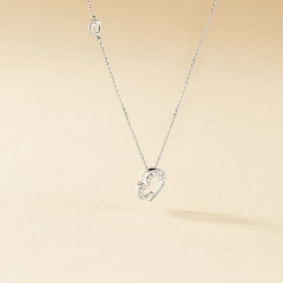 Collier Or Blanc 375/1000 Maille Jaseron C艙ur Diamants Pm 42cm