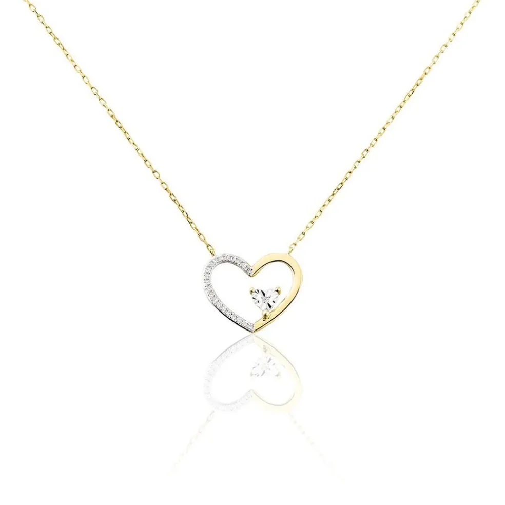 Collier Or Jaune 375/1000 2 C艙urs Diamants Micro Serti Maille Forcat Ronde 40+2cm