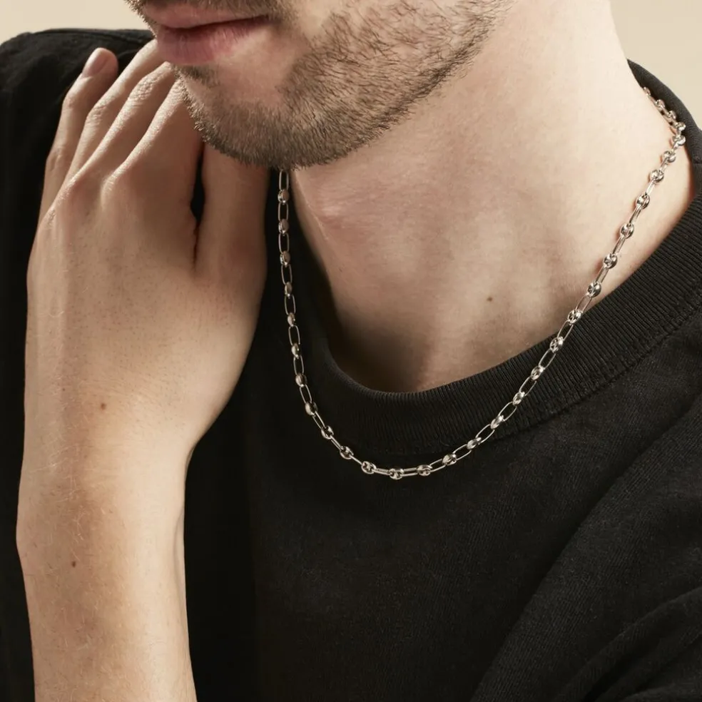 Collier Maille Argent Blanc 925/1000 Maille Grain De Cafe Epaisseur 3.5mm 50cm