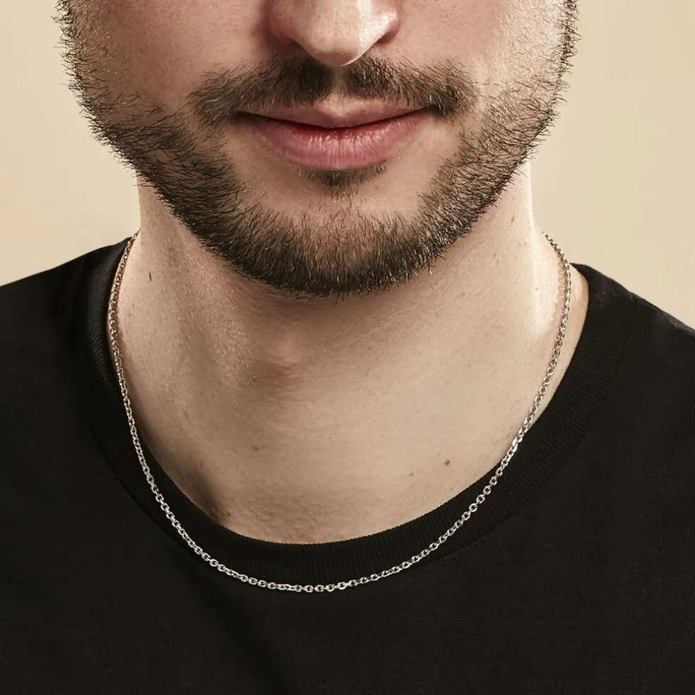 Collier Argent Blanc 925/1000 Maille Forcat Epaisseur 2mm 45cm