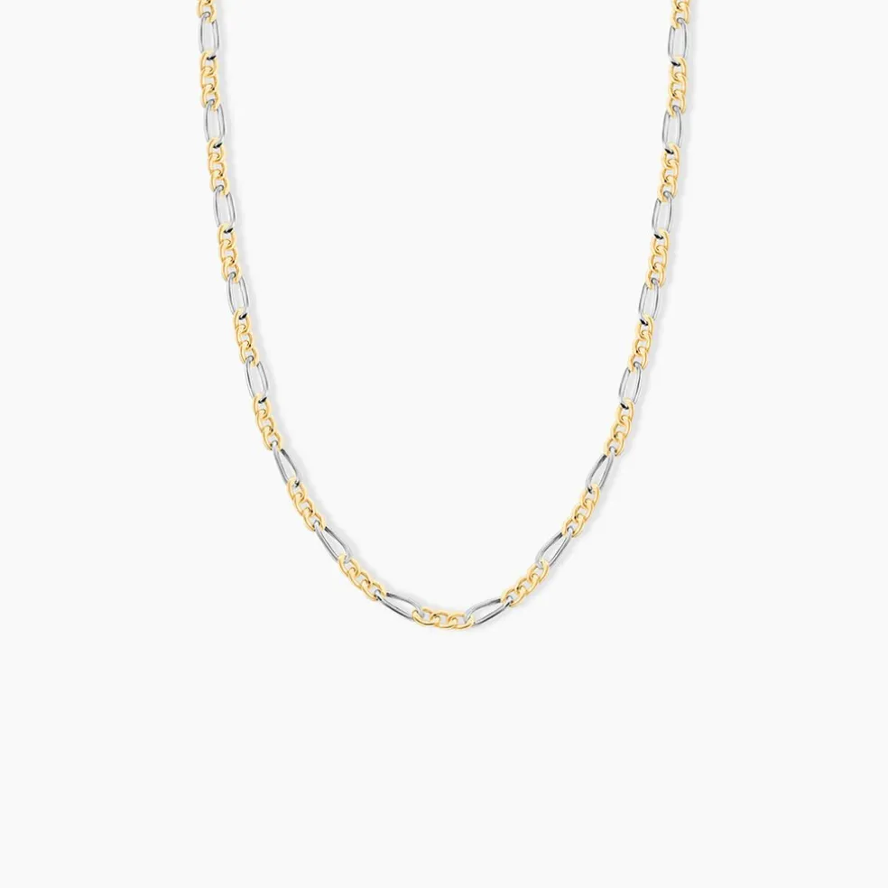 Collier Maille Or Bicolore Jaune Et Blanc 750/1000 Maille Alternee 1/3 Largeur 2.2mm 50cm
