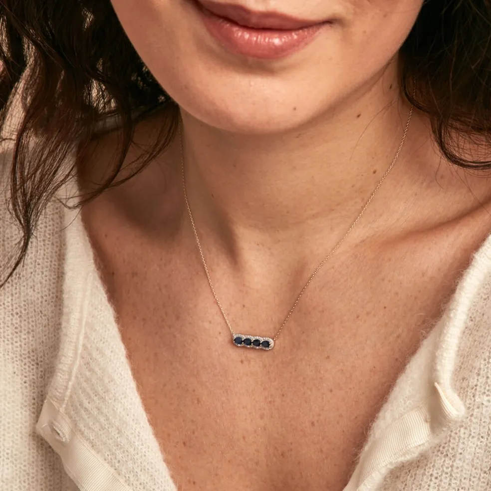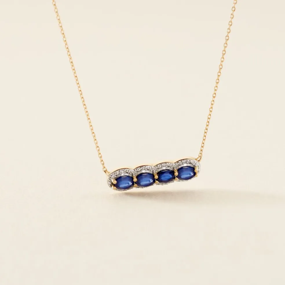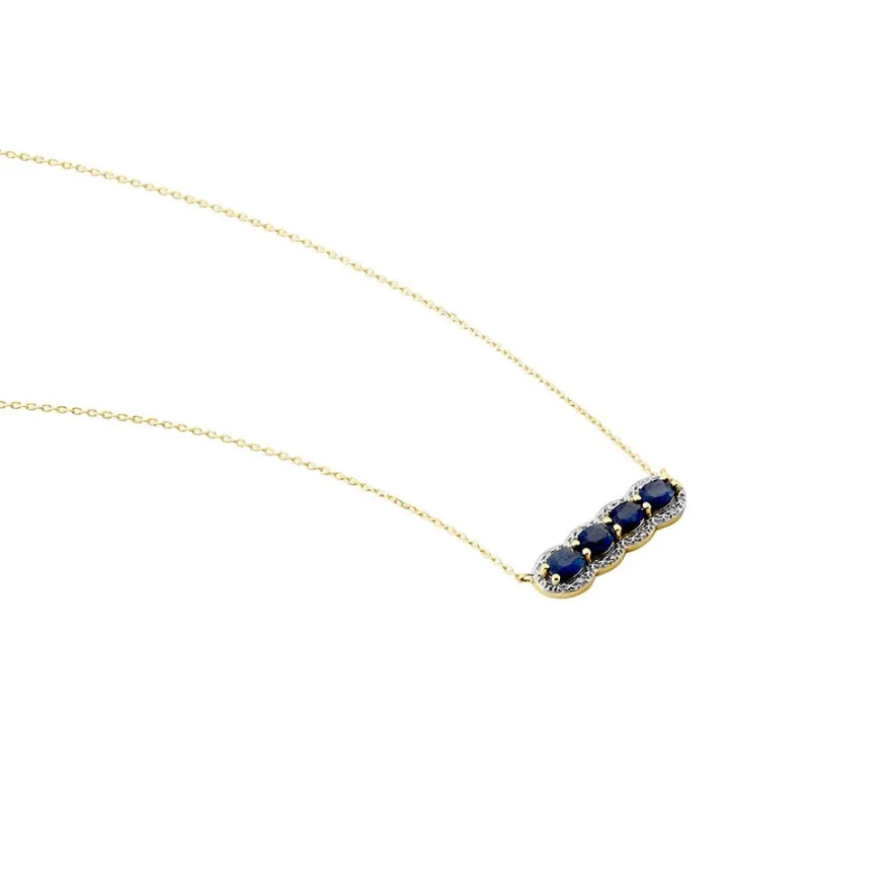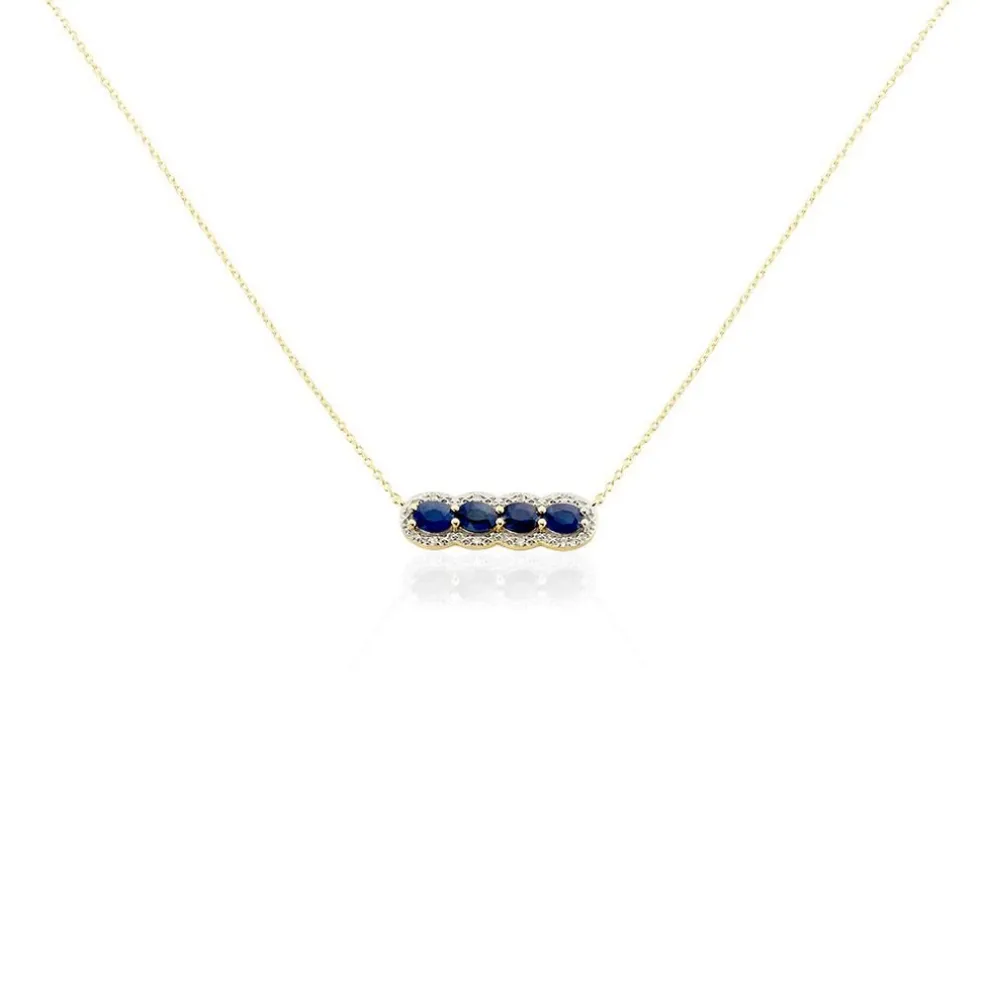 Collier Or Jaune 375/1000 Oval 4 Saphirs Entourage Diamants Maille Forçat 42cm